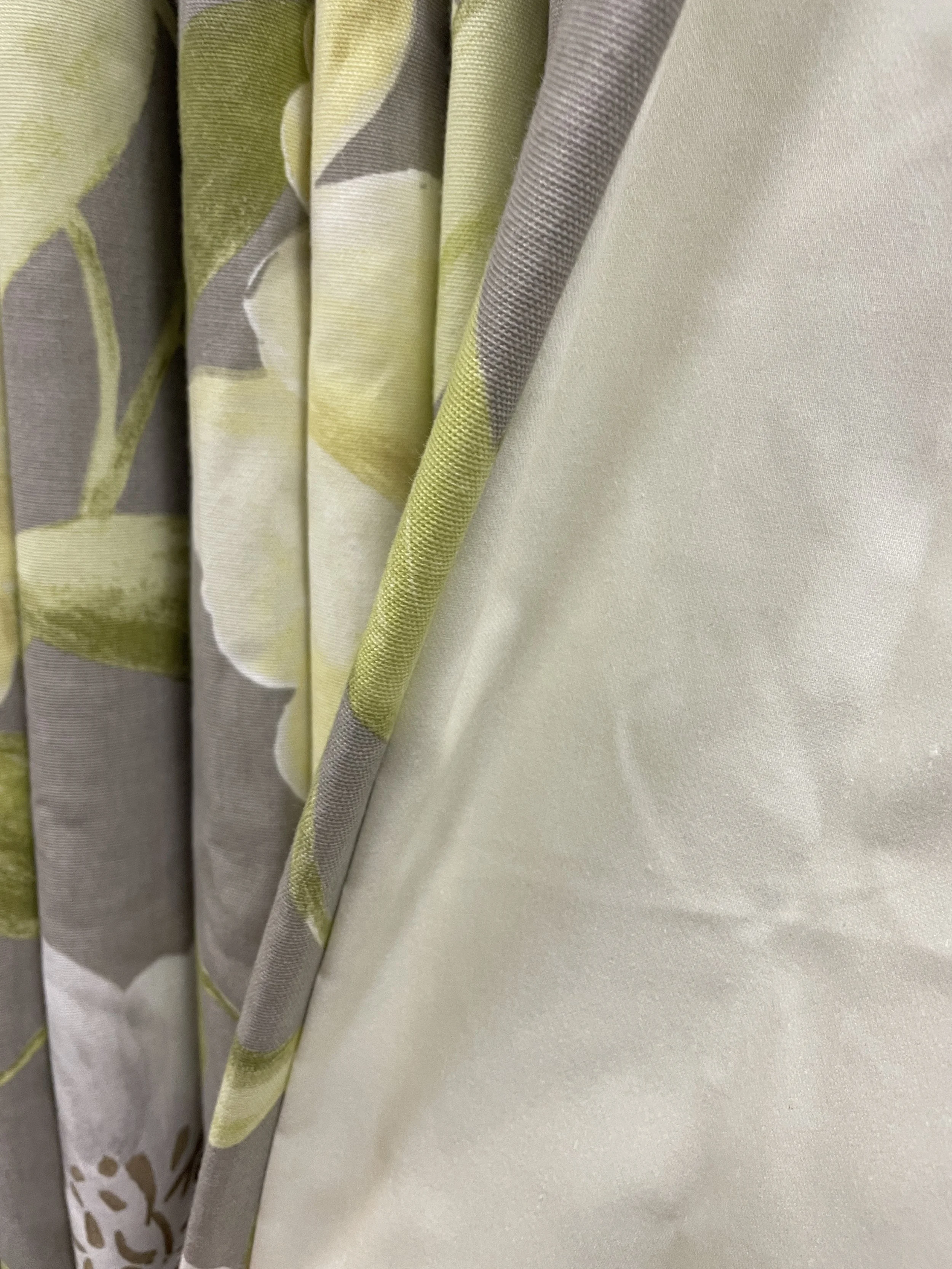 Fabric: Prestigious textiles ‘Honolulu’ chartreuse floral fabric in 100% cotton. There are 6 widths in these curtains.