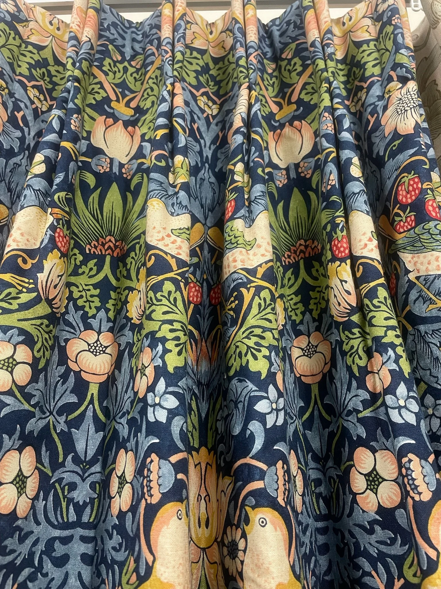 Fabric: A classic print from William Morris, printed on cotton. 'Strawberry Thief' - indigo/mineral colourway (RRP £112/m)
